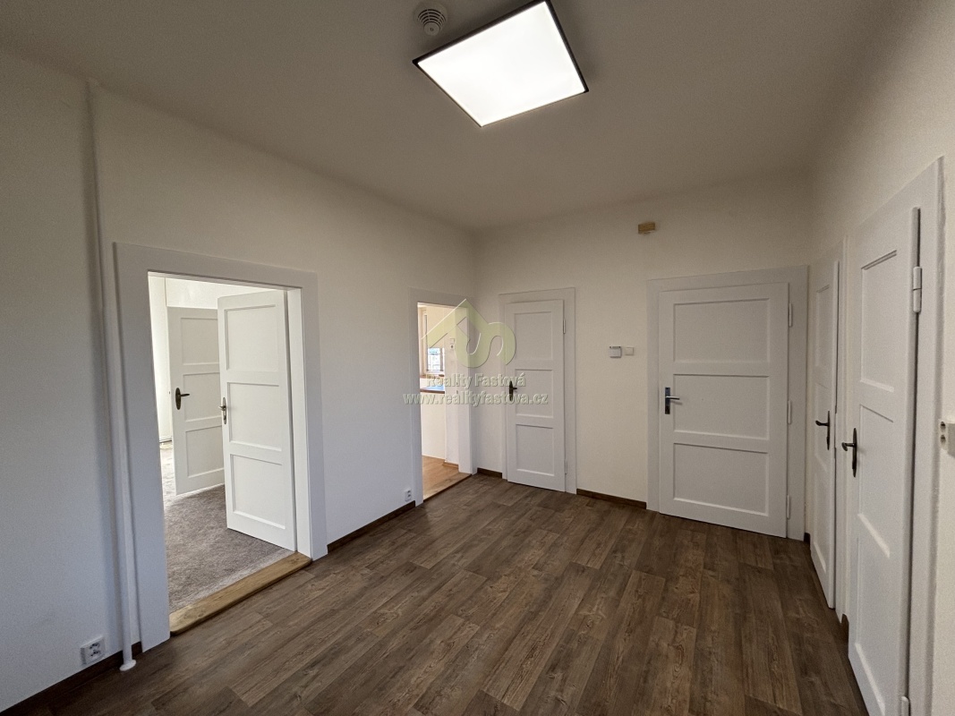 V Rokycanech, v ul. Dukelská, Vám nabízím do pronájmu krásný byt po kompletní rekonstrukci, o velikosti 3+1, o celkové výměře 98 m2. Byt se nachází v přízemí funkcionalistické vily, ve které jsou celkem 3 byty. Na každém patře pouze jeden byt.