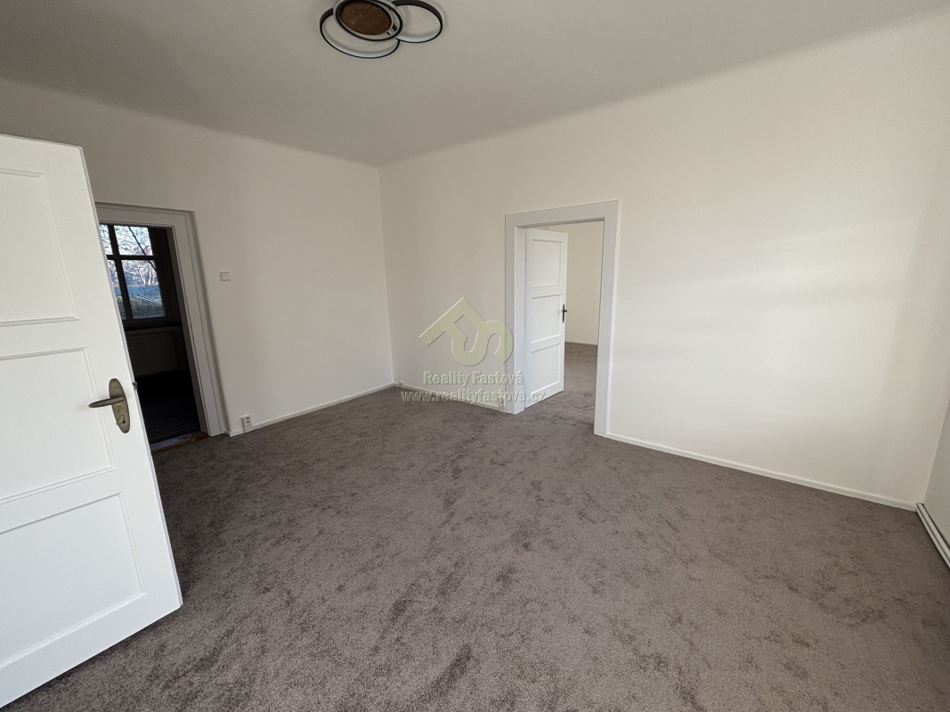 Byt disponuje 3 velkými pokoji, ve kterých jsou položeny nové koberce. Kuchyní, kde je osazena nová kuch.linka do tvaru „L“ s plynovým sporákem a el. troubou. Dále je zde zabudovaná myčka. Byt má dále prostornou vstupní předsíň, ve které najdeme úložnou komoru, samostatnou koupelnu se sprchovým koutem, umyvadlem a samostatnou toaletu. Jinak je byt nabízen bez nábytku.